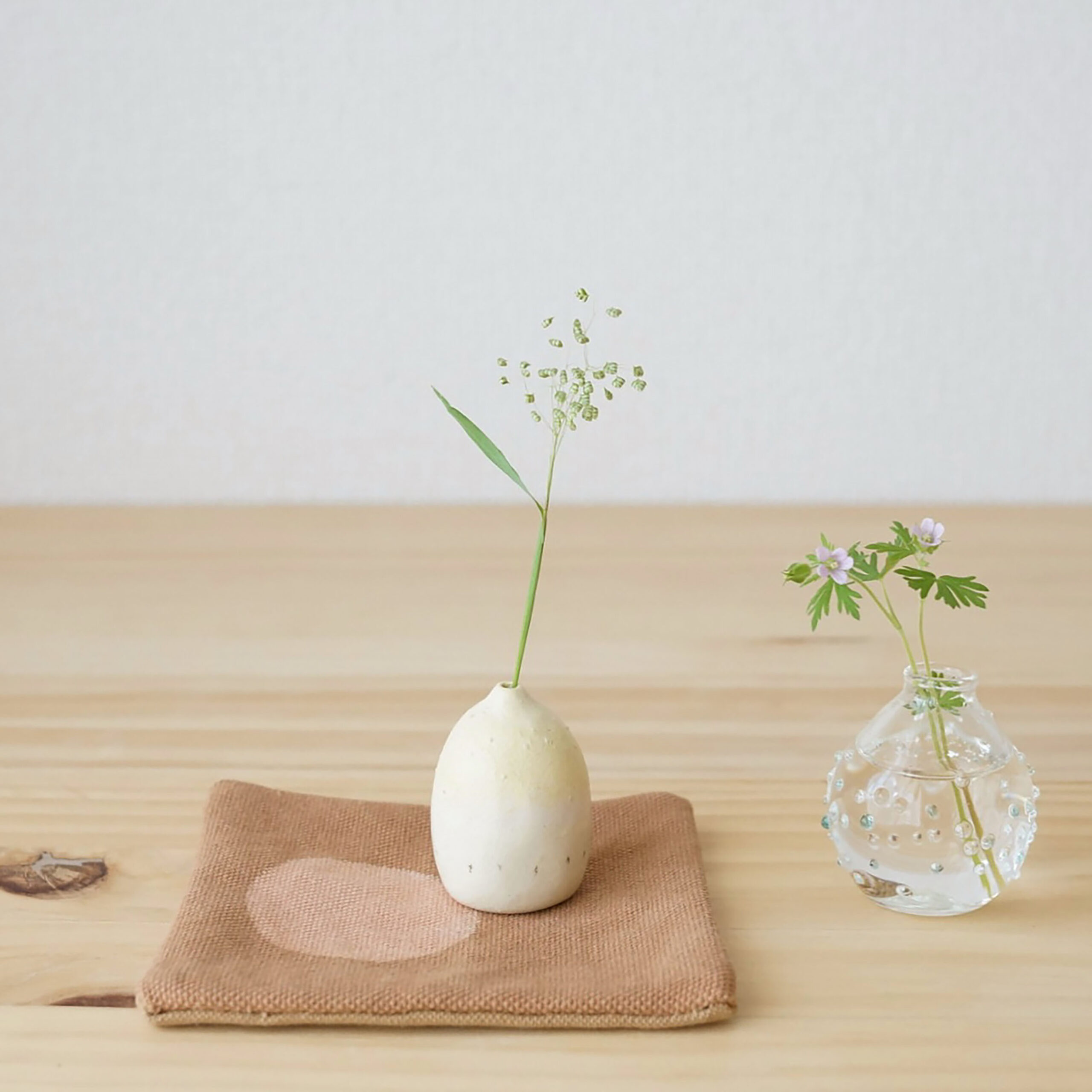 散歩や道草の愉しみに。草花のかけらを飾る小さな土の一輪挿しを焼いたり、絵日記を描いたりしています。