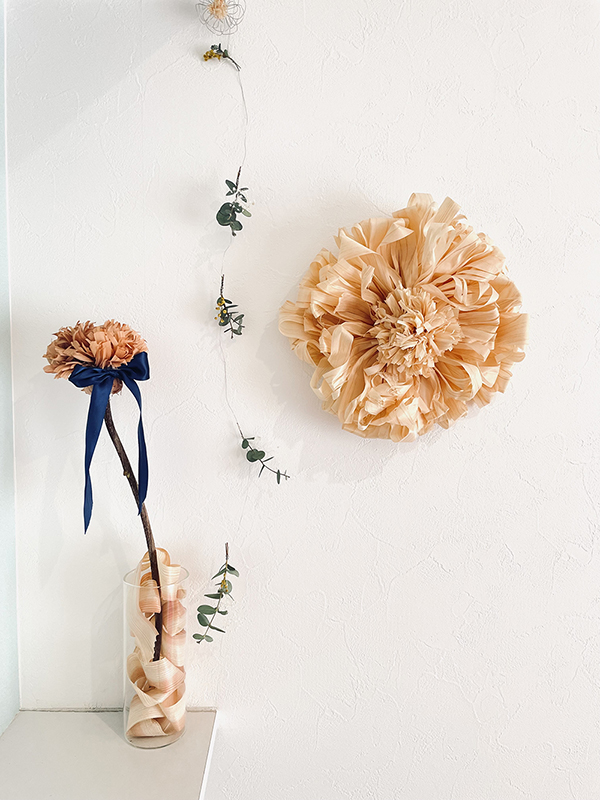 花や亀、リースなどの作品として形を変えて生まれます。